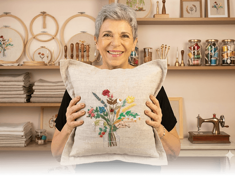 Compartilho toda a minha experiência em bordado livre na internet, assim você pode aprender a bordar diversas peças, mesmo que nunca tenha bordado antes.